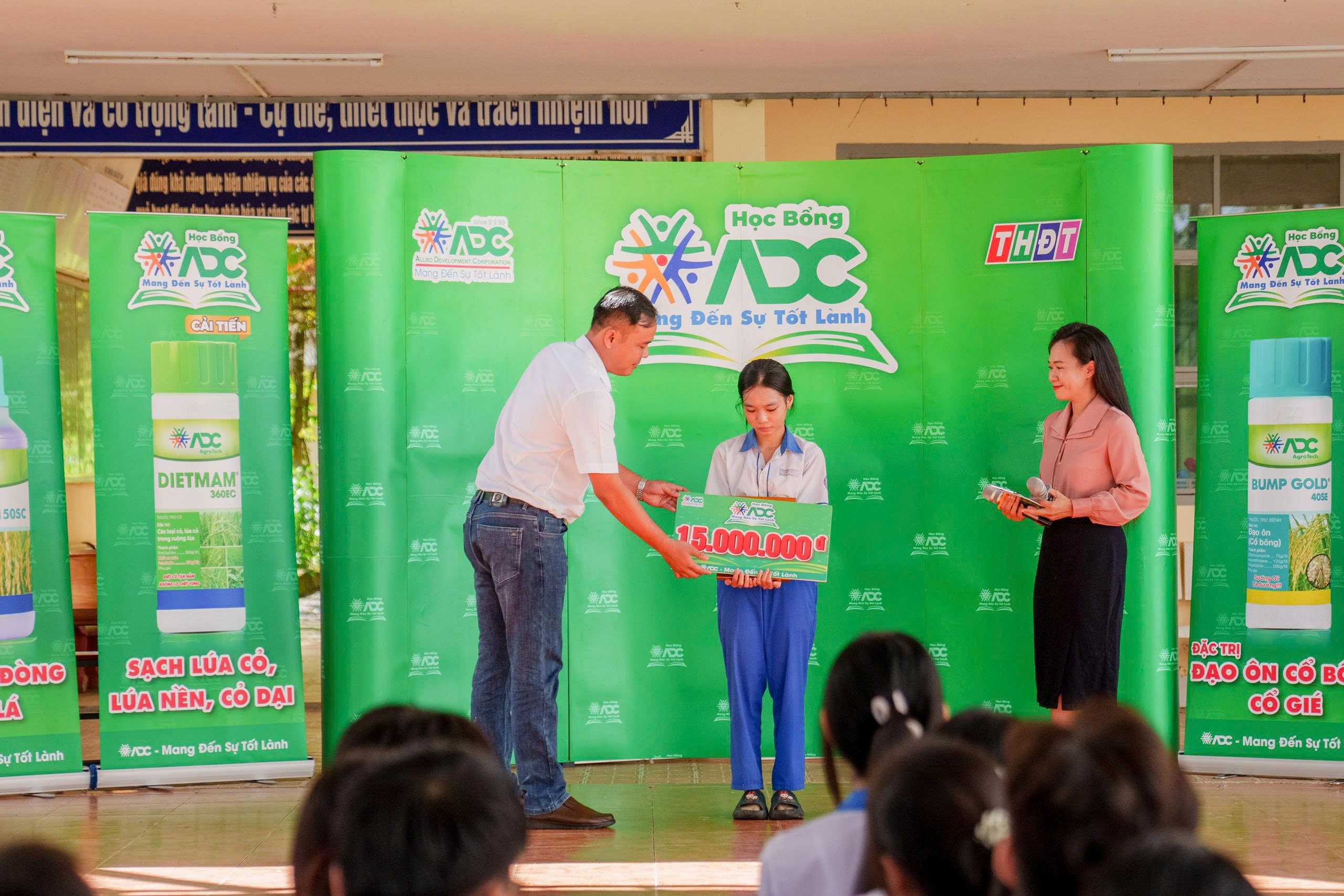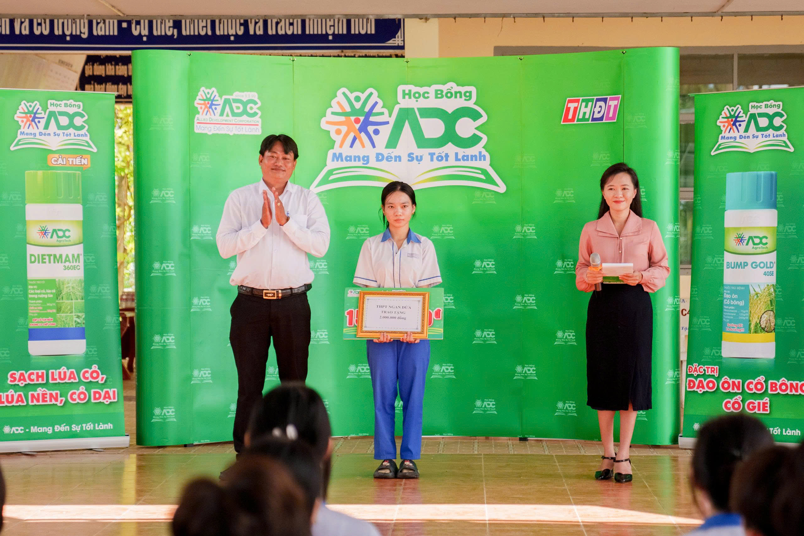 Trân quý trước những nổ lực và cống hiến của Như Ngọc, ADC phối hợp cùng Báo và Đài Phát Thanh Truyền hình Đồng Tháp tiến hành trao tặng cho em học bổng trị giá 15.000.000 đồng cùng 100 quyển tập (nhãn hàng thuốc DIETMAM tài trợ), 50 kg gạo hữu cơ (ADC rice), 1 combo gia vị (ADC Foods). Cùng với đó, tại buổi lễ trao học bổng ADC gửi tặng nhà trường 10 ghế đá (nhãn hàng thuốc Help) và 20 nón bảo hiểm (nhãn hàng Bump Gold).
